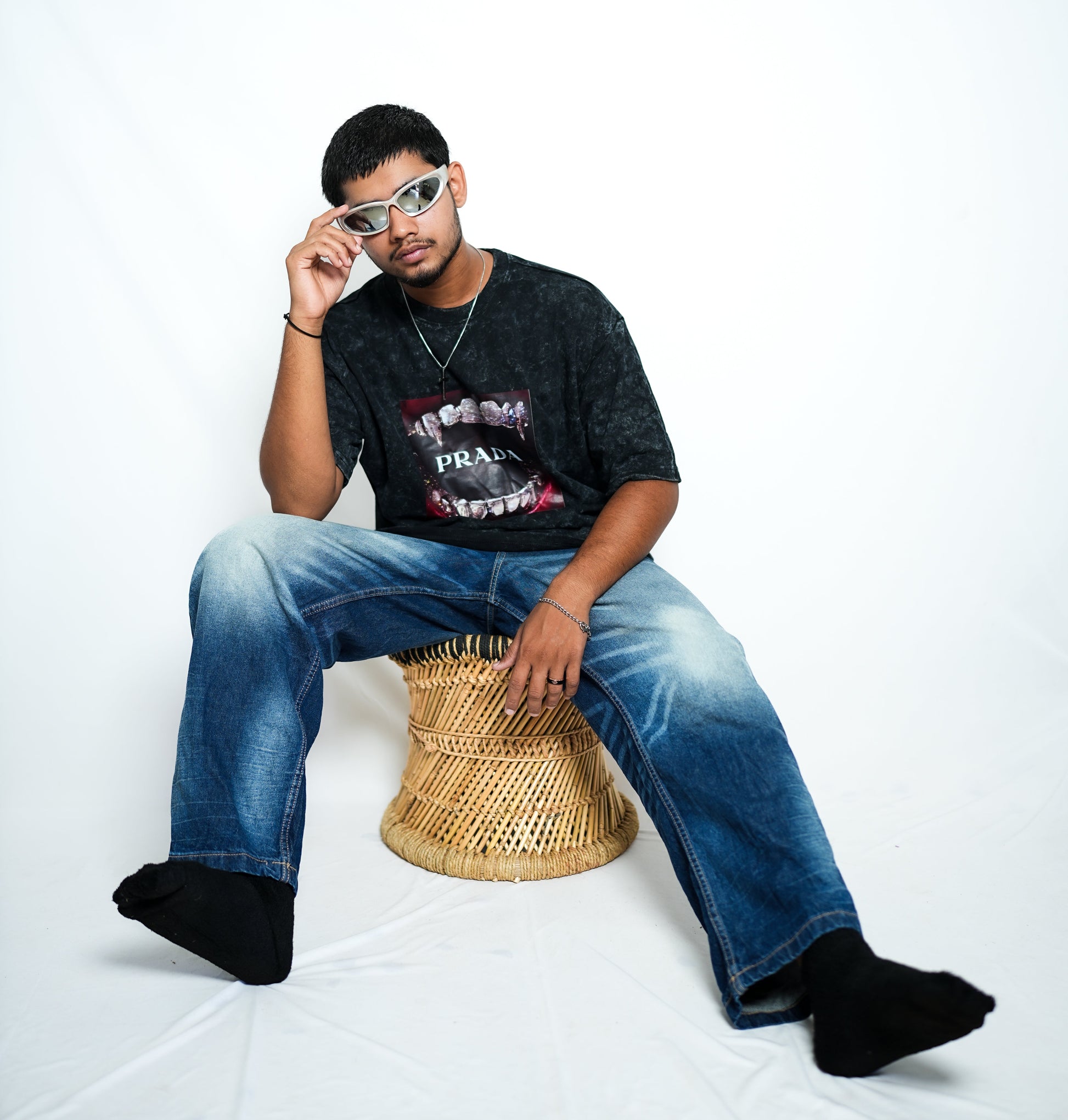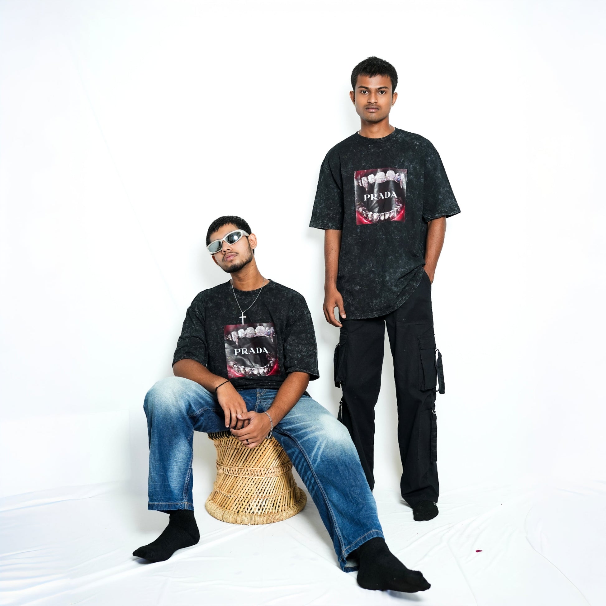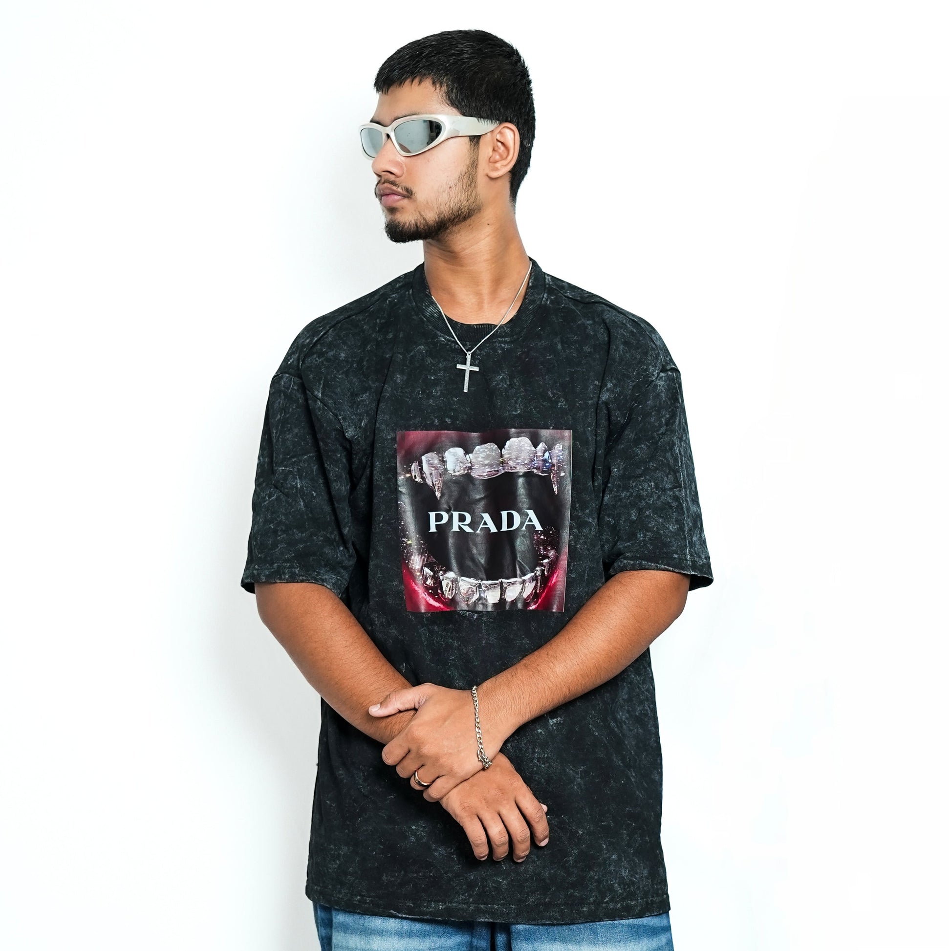 Premium PRADA unisex oversized T-shirt (black acid wash)